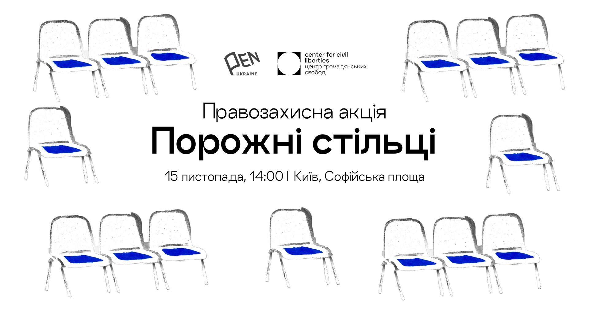 15 листопада о 14:00 на Софійській площі відбудеться щорічна правозахисна акція “Порожні стільці” на підтримку журналістів, письменників, діячів культури та правозахисників, що зникли безвісти, були ув’язнені чи перебувають в неволі через війну росії проти України. Організатори події — Український ПЕН та Центр громадянських свобод.