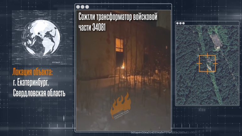 Агенти Опору “Свобода Росії” спалили трансформатор військової частини № 34081 (29-та бригада військ радіаційного, хімічного та біологічного захисту) в Єкатеринбурзі (Уральський федеральний округ). Це призвело до призупинення роботи частини, де розміщуються та проходять короткочасну підготовку військовослужбовці перед виряджанням в Україну.