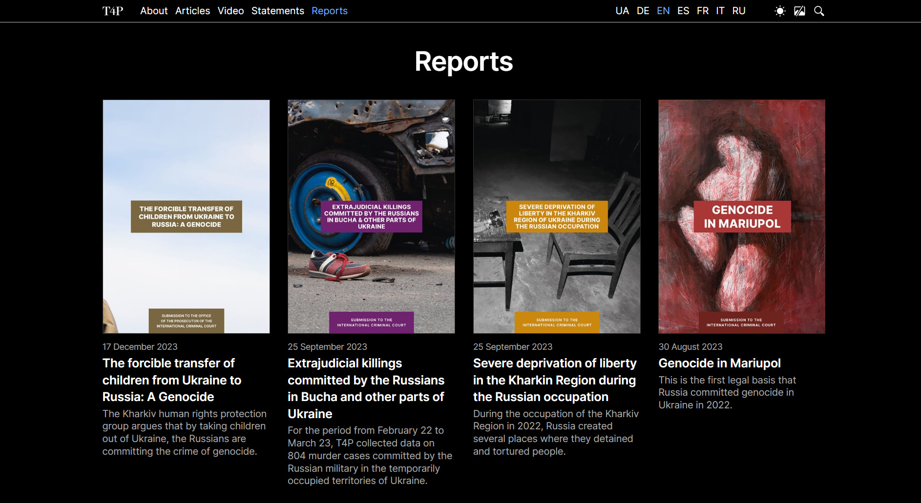 - Torments, Torture Chambers, Executions: T4P Initiative Presents Two Submissions to the International Criminal Court https://t4pua.org/en/1973