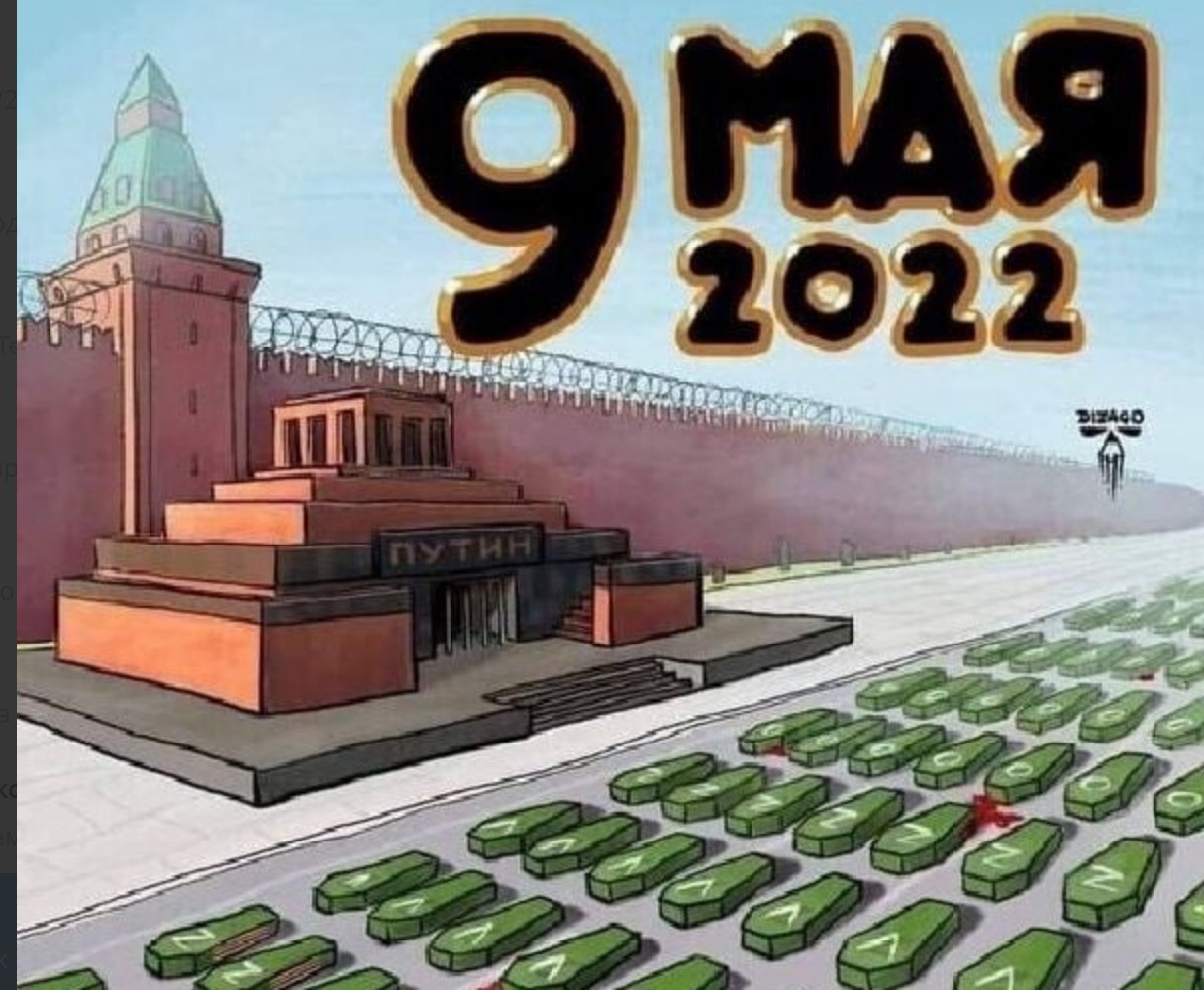 In this case, the sentence would appear to have been over the image above with coffins bearing the ‘Z’ which has become a symbol of Russia’s war against Ukraine on Red Square, instead of soldiers marching and tanks